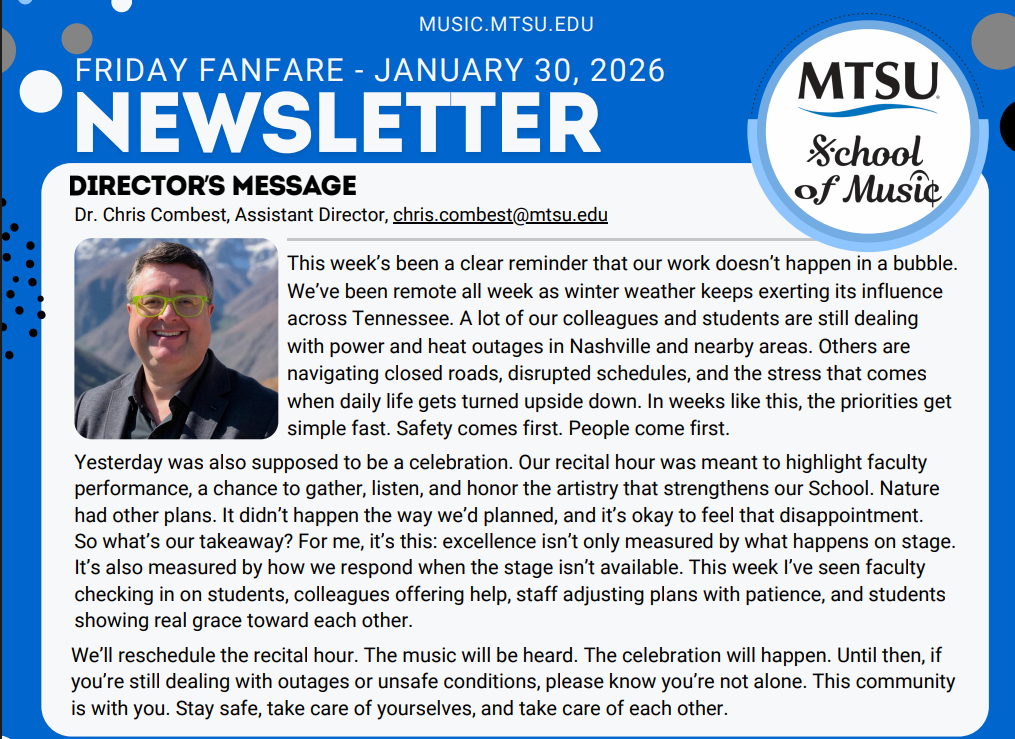 If you would like to receive this weekly newsletter, or other updates related to the MTSU School of Music, please respond to this form: https://forms.office.com/r/ePXQTDtLNx