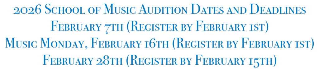 An audition is required for admission into the School of Music as a music major, music minor, or to take private lessons as a non-music major. The audition also determines music scholarship awards, with priority consideration given for auditions completed by February 28, 2026. If choosing Virtual Audition on your application, click here or the link below between February 1st and April 30th to submit your pieces via our portal. Students wanting to audition for Fall 2026 admission to the School of Music should follow the steps below. Please contact Angela Satterfield at 615-898-2469 or askmusic@mtsu.edu if you have questions.